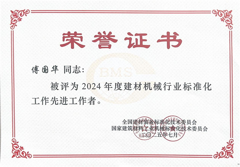在同期举行的表彰环节中,K8凯发股份被授予“2024年度建材机械行业标准化工作先进集体”称号,公司副总经理傅国华荣获“2024年度建材机械行业标准化工作先进工作者”称号。