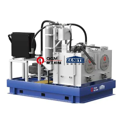 压头、模框、骨料车、面料车,采用带阀芯反馈的比例方向阀控制,响应时间快;采用位移传感器/编码器-PLC-比例方向阀-油缸的闭环控制方式,控制更精准,油缸动作又快又稳;液压站采用变量柱塞泵,当液压系统达到设定压力时,油泵不输出压力油,油泵卸载,降低能耗;液压站采用蓄能器辅助供油,可多动作同时动作,且液压系统压力稳定;液压系统有压力传感器,可在操作面板上显示,方便查看;液压系统有温度传感器、冷却器、加热器,可有效控制油温,使液压油有良好的性能。